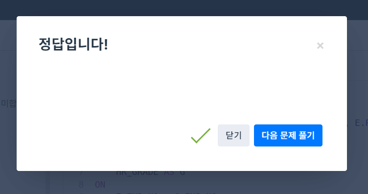 | 테이블 E와 G 조인 | JOIN HR_GRADE AS G ON E.EMP_NO = G.EMP_NO |
