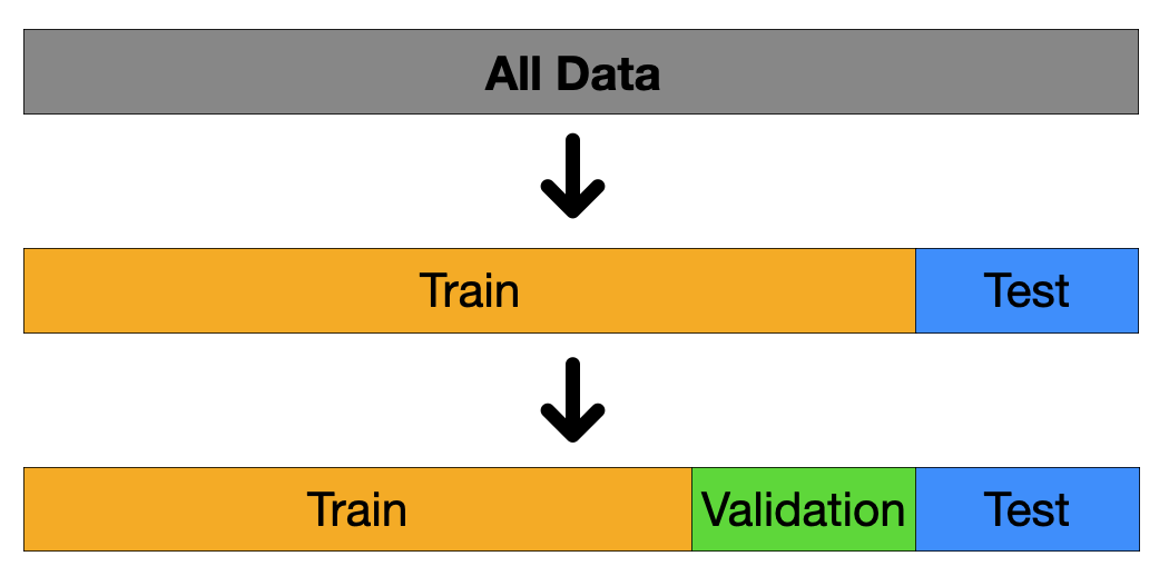 검증 세트 이전에는 전체 데이터를 단순히 training set과 test set으로 나누었다.